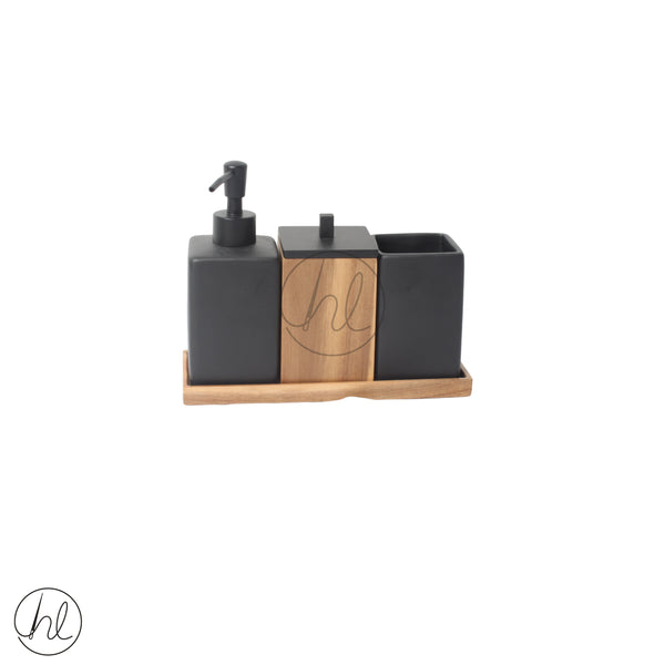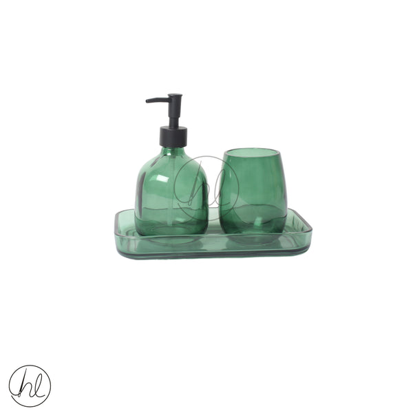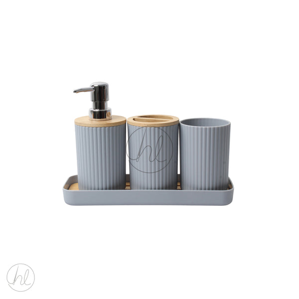 Product: Bathroom SetDescription: A coordinated set of bathroom essentials, typically including items like soap dispenser, toothbrush holder, and tumbler. Helps keep your bathroom organized and stylish.
