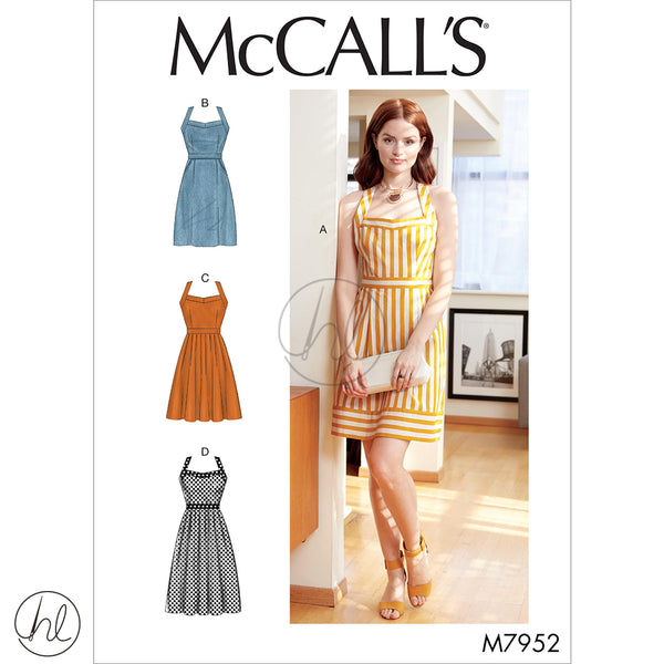 Product : Mccalls Pattern E5 7920 Size : 14-22 McCall's pattern M7920 is for Misses' and Miss Petite semi-fitted, button-front dresses with various length, skirt, and pocket options. The dresses feature...