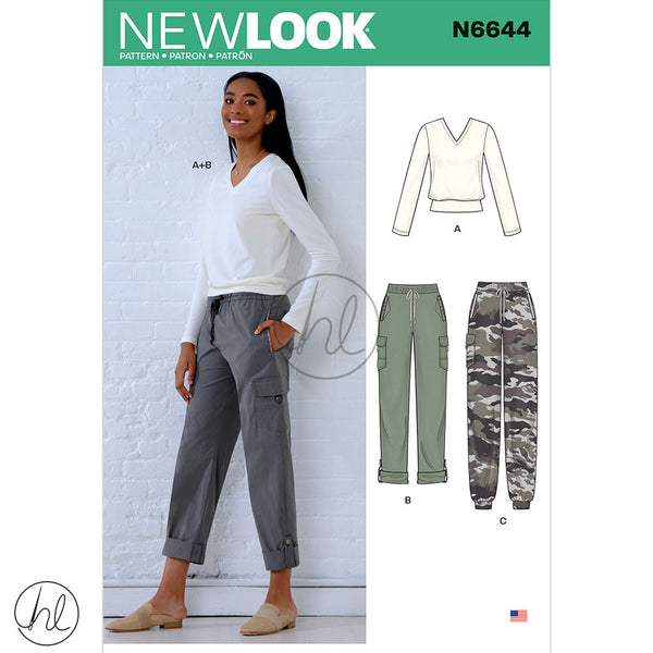 Product : New Look Pattern N6644 Size : 8-20 Misses' casual top and pull-on pants. Pull-on v-neck top with long sleeves and waistband, designed for stretch knits only. Pants, designed...