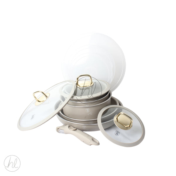 Product name: COOKWARE SET Color: Cream Size: 12 piece Set includes: Removable handle 16cm sauce pan 18cm casserole with lid 20cm casserole with lid 24cm fry pan 28cm fry pan with lid...