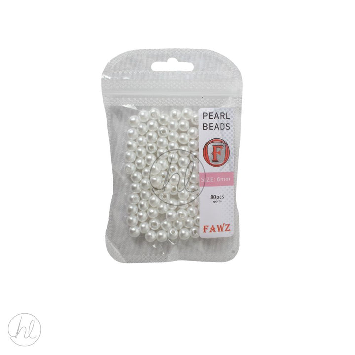 Round pearl beads, 6mm size. Perfect for jewellery making, embroidery, crafts, and decorative projects.
