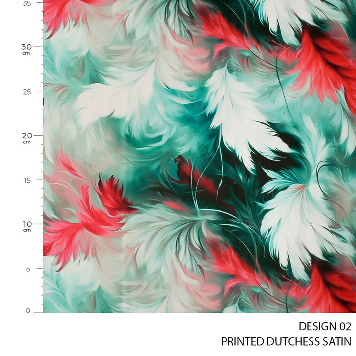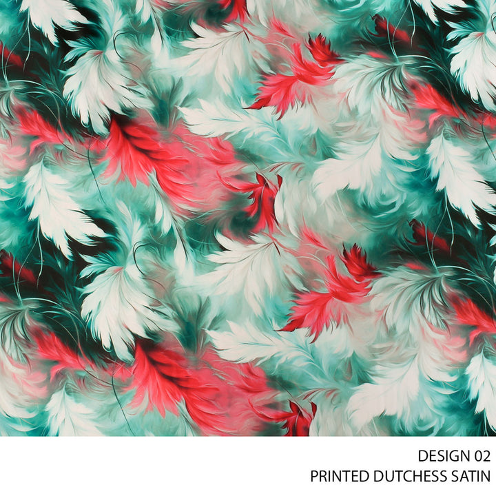Printed Duchess Satin is a luxurious, medium- to heavyweight fabric known for its smooth, glossy surface and elegant drape. Featuring vibrant and detailed prints, this fabric combines the richness of satin with bold designs that stand out beautifully.
