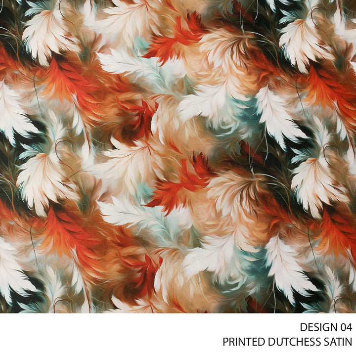 Printed Duchess Satin is a luxurious, medium- to heavyweight fabric known for its smooth, glossy surface and elegant drape. Featuring vibrant and detailed prints, this fabric combines the richness of satin with bold designs that stand out beautifully.