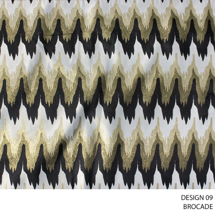 Brocade is a richly decorative woven fabric characterized by intricate patterns, often featuring floral, damask, or geometric designs. The motifs are usually created using a supplementary weft technique, giving the fabric a slightly raised and textured appearance. Traditionally associated with luxury, brocade has a regal and elegant finish with a subtle sheen.