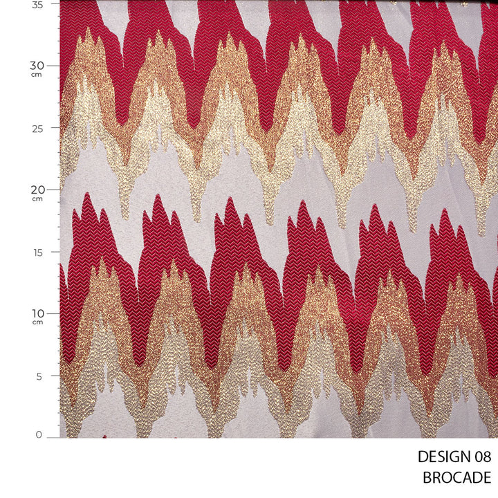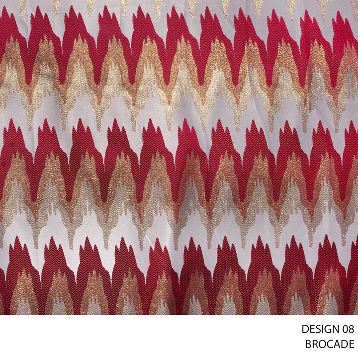 Brocade is a richly decorative woven fabric characterized by intricate patterns, often featuring floral, damask, or geometric designs. The motifs are usually created using a supplementary weft technique, giving the fabric a slightly raised and textured appearance. Traditionally associated with luxury, brocade has a regal and elegant finish with a subtle sheen.
