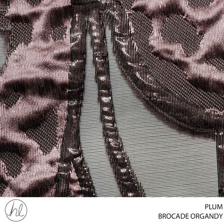 Organdy brocade is a crisp, sheer fabric made from fine organdy, intricately woven with brocade patterns for a luxurious and elegant finish. It combines the lightweight stiffness of organdy with the rich, textured designs of brocade, giving it both structure and sophistication.