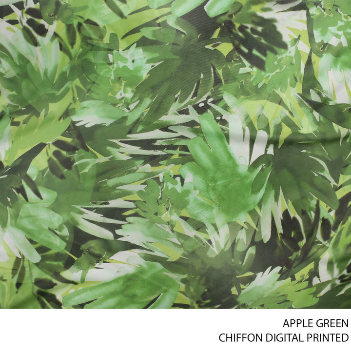 CHIFFON DIGITAL PRINTED FARBIC 150CM APPLE GREEN ROLL ROLL 001