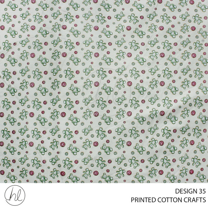 COTTON CRAFT BOLLY PRINTED FABRIC BEARS GREEN ROLL ROLL 001