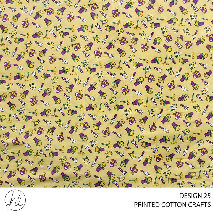 COTTON CRAFT GARDEN TOOLS PRINTED FABRIC YELLOW ROLL ROLL 001