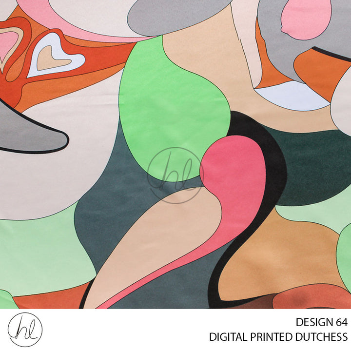 Printed Duchess Satin is a luxurious, medium- to heavyweight fabric known for its smooth, glossy surface and elegant drape. Featuring vibrant and detailed prints, this fabric combines the richness of satin with bold designs that stand out beautifully.