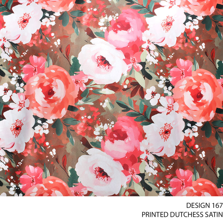 Printed Duchess Satin is a luxurious, medium- to heavyweight fabric known for its smooth, glossy surface and elegant drape. Featuring vibrant and detailed prints, this fabric combines the richness of satin with bold designs that stand out beautifully.