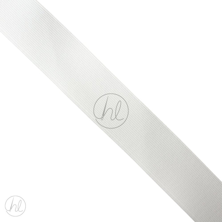 This 38mm white loom elastic is a versatile, medium-width elastic ideal for various garment and craft applications. Designed for comfort and durability, it provides a secure stretch perfect for waistbands, activewear, and general sewing needs.