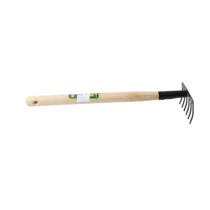 Description: Durable garden rake designed for gathering leaves, grass, and garden debris. Features sturdy tines and a comfortable handle for easy use. Ideal for maintaining neat and tidy outdoor spaces.