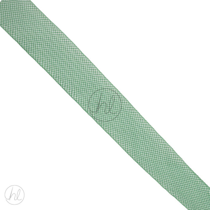 A lightweight, stiff netting used to add structure and volume to garments. This 2.25cm wide grinolene is ideal for reinforcing hems, waistbands, and edges in dresses, skirts, hats, and formalwear. Sold per meter, it provides flexible support without adding bulk. Commonly used in bridal, dancewear, and costume design.