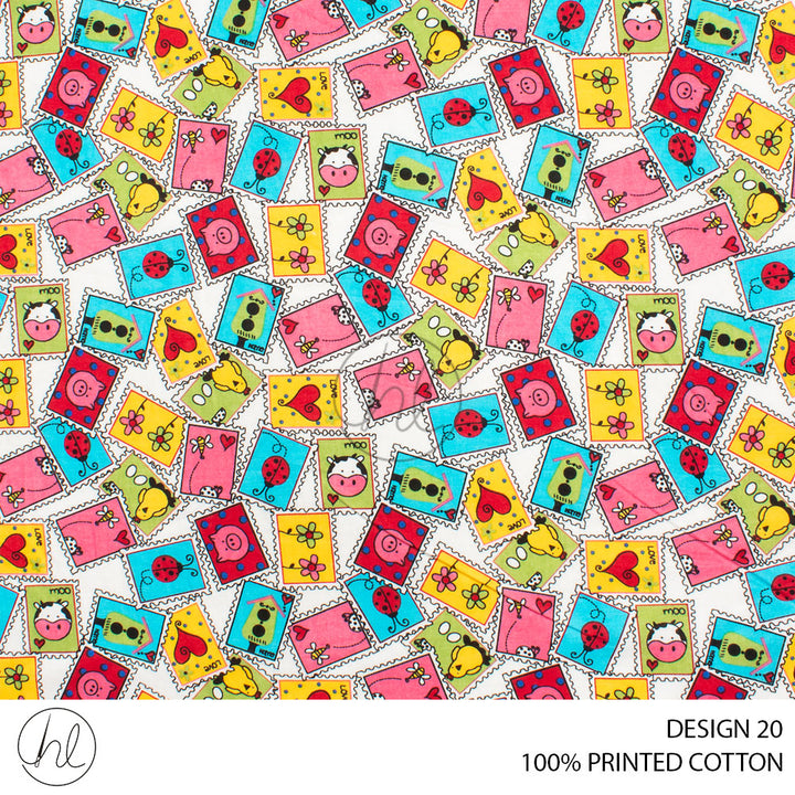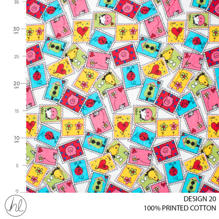 LOVE STAMP PRINTED FABRIC 140CM WHITE ROLL ROLL 001