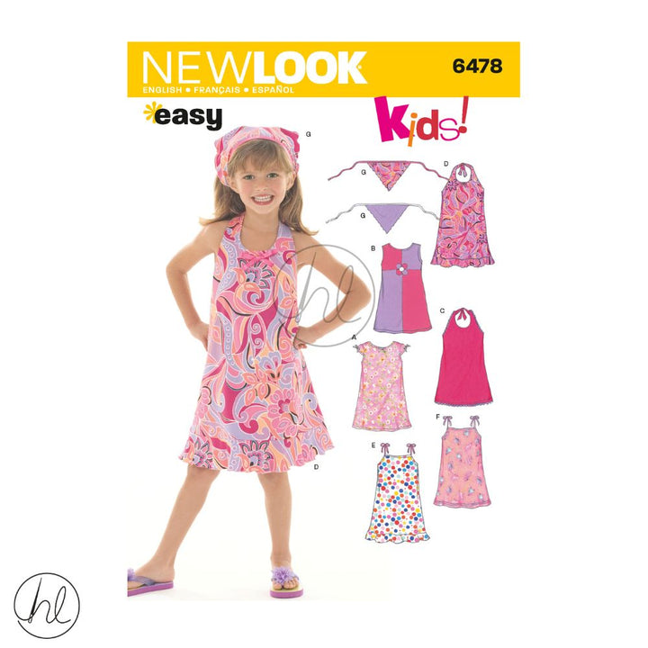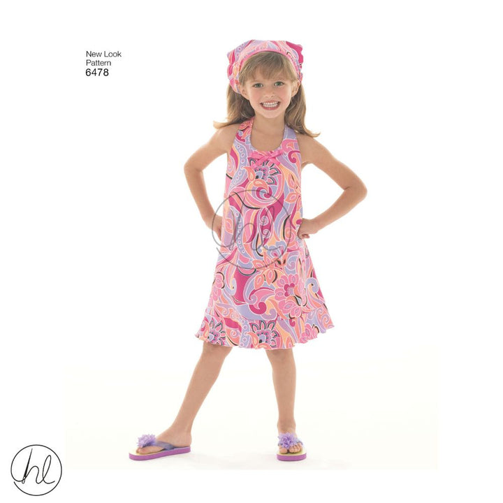 New Look Pattern N6478 features a Child’s dress, halter dress, sundress and head scarf.