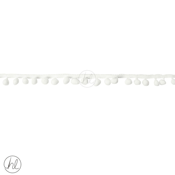 Medium-sized pom poms, sold per metre, attached on a trim. Perfect for edging, crafts, and decorative projects.