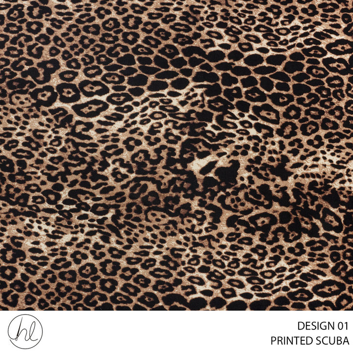 SCUBA PRINTED FABRIC 150CM BROWN ROLL ROLL 001