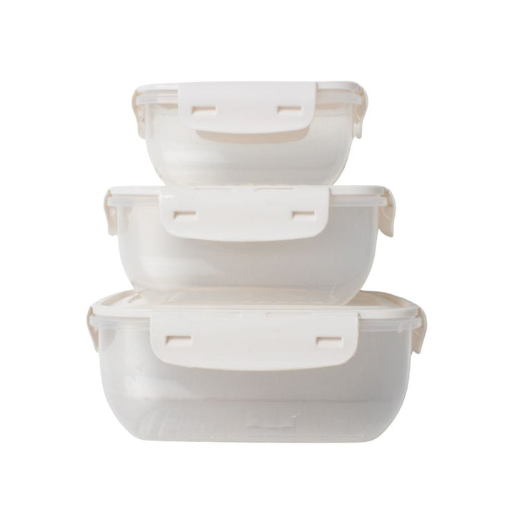 Description: Keep food fresh and organized with this set of three clear containers featuring secure clip-lock lids. Perfect for storing leftovers, meal prep, or snacks. Durable, stackable, and easy to clean for everyday convenience.