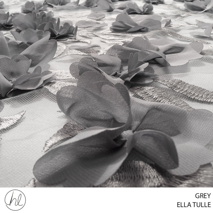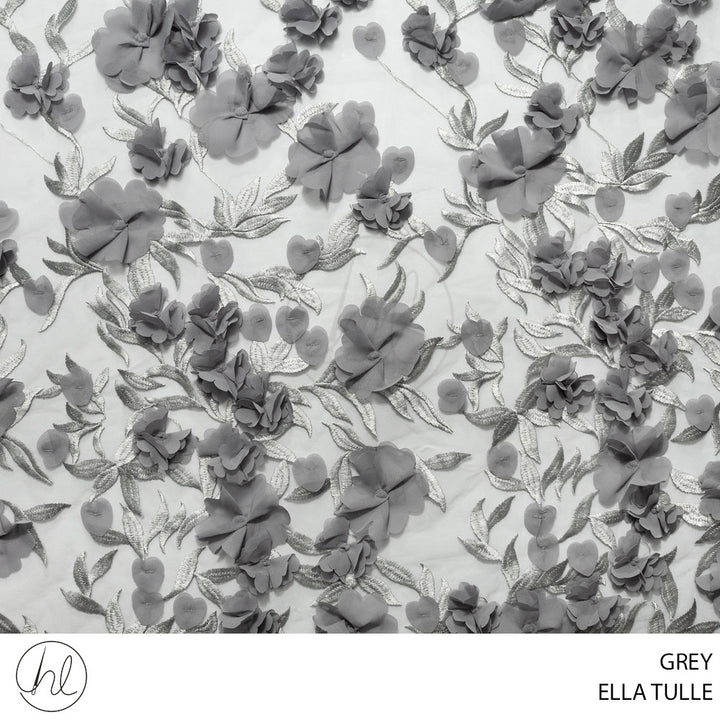 Ella Tulle is a delicate, sheer mesh fabric that features intricate embroidery combined with individually sewn-on 3D floral appliqués. The tulle base gives it a lightweight and airy feel, while the embroidered details and dimensional flowers add texture and elegance. This fabric is often used in high-end fashion, evening wear, bridal gowns, and special occasion outfits where a romantic and ethereal look is desired.